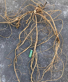 劣質(zhì)苗結薯特點 收獲期主根為木質(zhì)薯,其他分根薯細小,整棵重量少